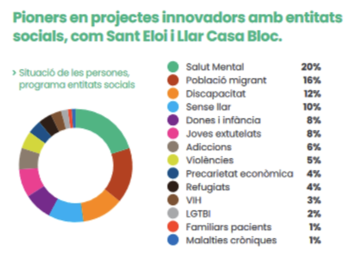 Amb els habitatges les entitats adrecen les diferents situacions de les persones i la temporalitat dels habitatges depèn del projecte d’acompanyament de cadascuna. En uns casos Sant Eloi és un habitatge temporal fins que les persones puguin assolir una vida autònoma i en d’altres és un habitatge definitiu.